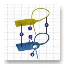 2.3mm diameter, plastic security seals. 5" or 8" lengths, with custom laser marking of text and sequential numbering.